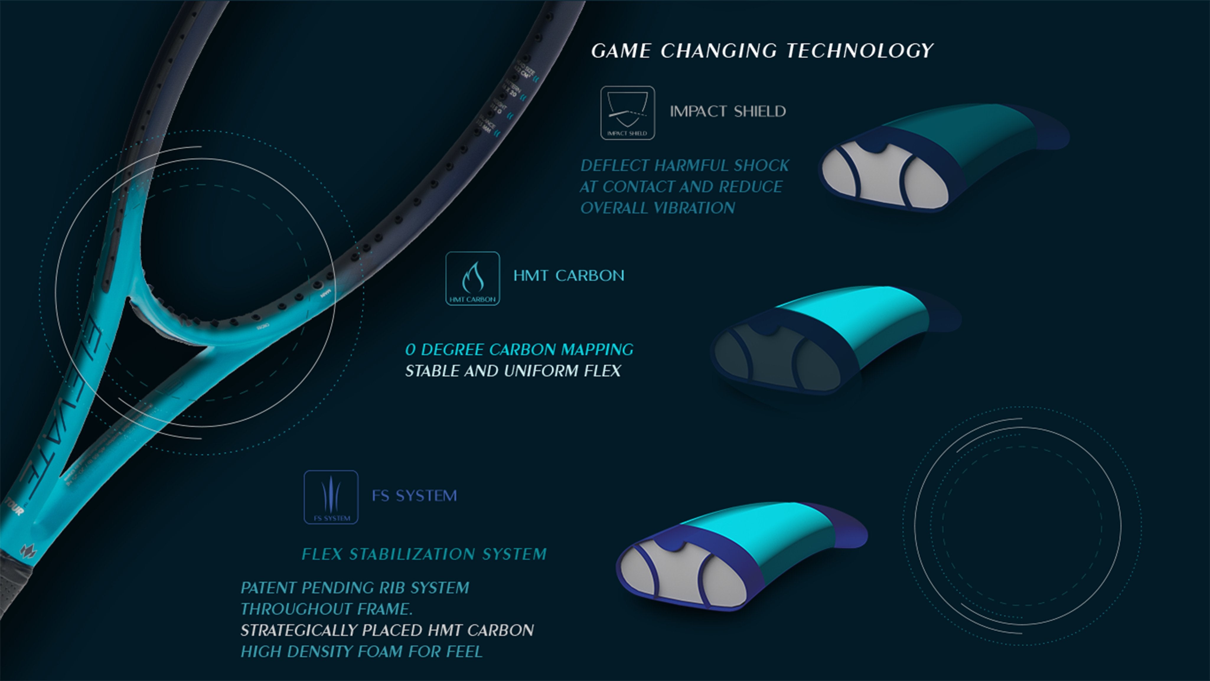 The Diadem Elevate 98 Tour is a player’s racket for the modern game so you can control the court with increased stability and power. Featuring Flex Stabilization System (FS), the first technology to utilize patent pending rib structure in the frame that combines high density foam and HMT Carbon, strategically placed to create a stable and powerful frame with superior feel. The Elevate 98 Tour has a very maneuverable weight and balance giving player’s every advantage from all areas of the court. The Diadem Elevate FS 98 Tour also has a 16x20 string pattern for the perfect blend of precision and spin to control the court.
